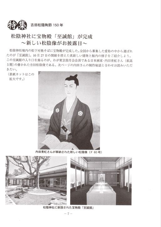 東京指月会 第42回(2009.11)号に吉田松陰像奉納関連の記事(p.7 p.8)が掲載されました。 |