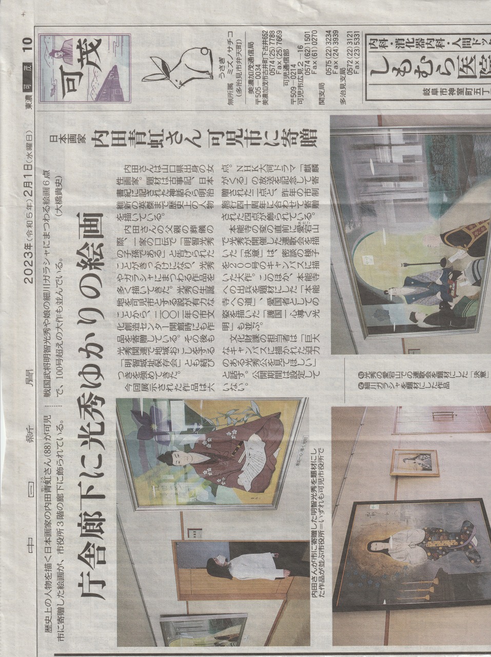 2023年1月23日 岐阜県可児市に寄贈した(2020年、2022年)計6点が可児市役所に展示されました。